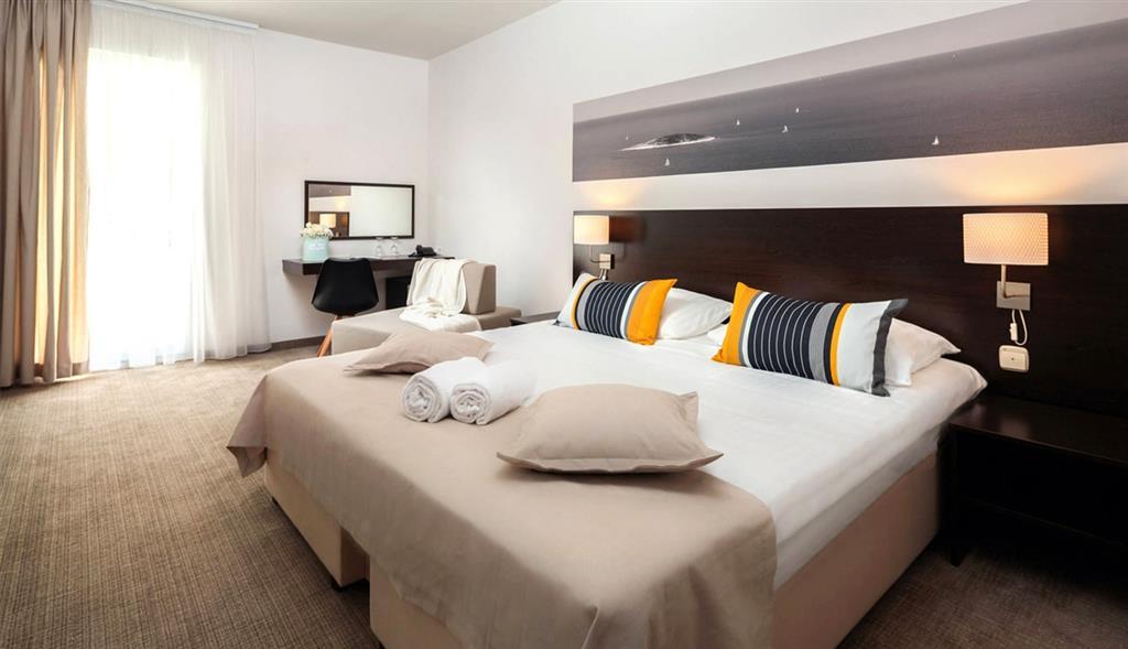 Oblázková až kamenitá pláž se nachází přímo před hotelem. Pláž má upravený terén s moly a betonovými panely, které umožňují přijatelnější vstup do moře. Na pláži se děti mohou vyřádit na vodním nafukovacím parku a dospělý si mohou pronajmout loď či vodní skútr. U pláže se nachází bar s občerstvením. Plážový servis je za poplatek. Cestujete s dětmi?Dítě do 11,99 let na má pobyt přistýlce zdarma. Děti do 4,99 let spí na lůžku s rodiči a mají pobyt také zdarma. V případě autobusové dopravy hradí děti stejnou cenu dopravy jako dospělé osoby. Dětská postýlka je zdarma a je k dispozici na vyžádání. Ve vedlejším hotelu Punta se mohou děti účastnit animačních programů a další aktivit, které jsou pro děti připraveny v době hlavní sezony. Tipy na výlety